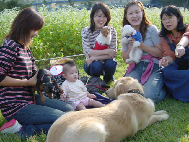 漢江公園でワンコオフ会があったんだよ♪ いろんなワンちゃんいっぱい いてびっくりちちゃった☆ お父しゃんとお母しゃんとくるちゃんと 4人で撮った初めての写真なの! |